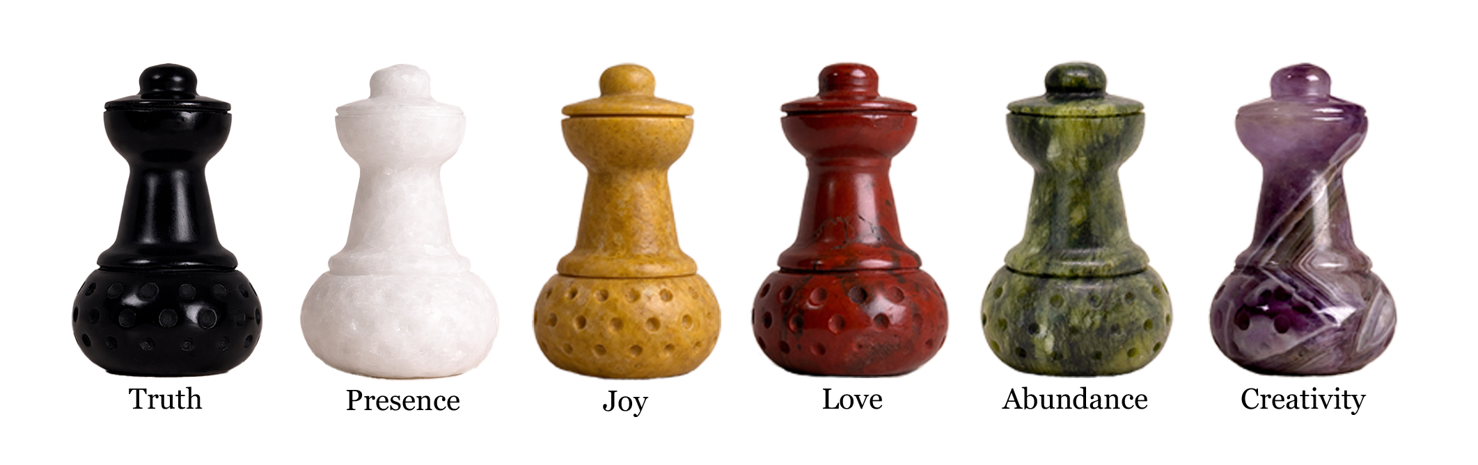 Each Alchemy Pot is carved from a different gemstone, holding a different intention. Together they form a complete practice — inner work made tangible.